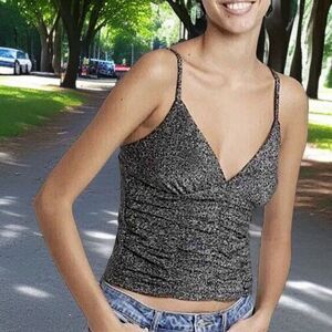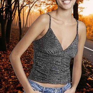 Y2K Coquette Ruched Tank Top XS Crop Corset Cami Goth Glittery Fairy Whimsigoth