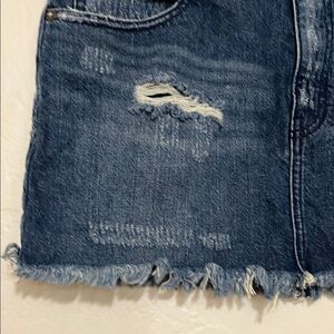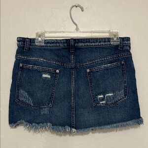 Y2K Free People Blue Factory Distressed Denim Boho Raw Hem Mini Skirt. Size 6, in good pre owned condition, view all photos for best representation.
