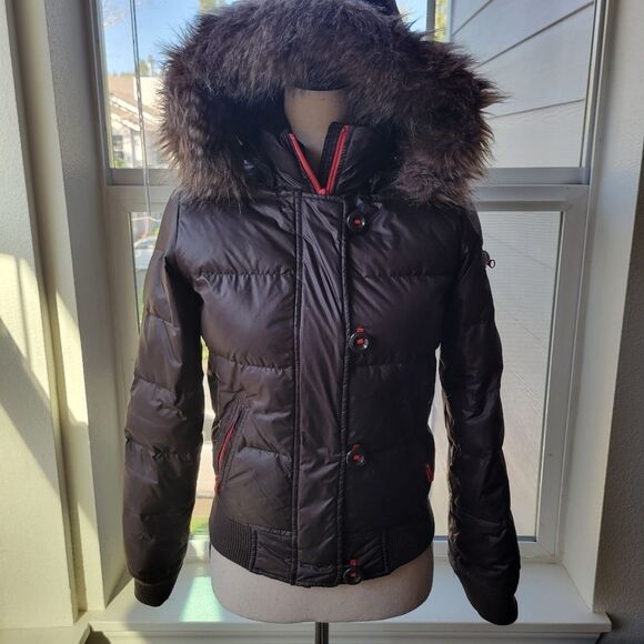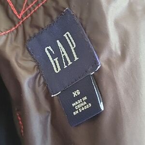 Y2K Vintage jacket from GAP. Hood is removable. Zips and buttons down. NO fabric tag but feels like down & fur. Jacket is not technically reversible but put on mannequin inside out to show inner graphic. Size XS.