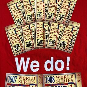 St. Louis Cardinals, double graphic tee, slight distress on the majestic tag.