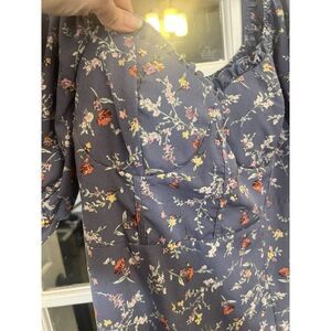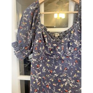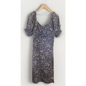 Y2K Inspired Hearts 90s Midi Dress Sz L Blue Purple Floral Milkmaid Babydoll.