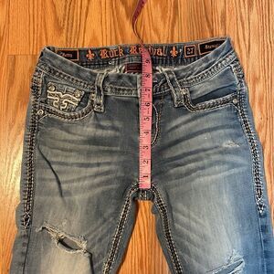 Y2K Rock Revival Betty Straight Jeans, Distressed, Bling, 27