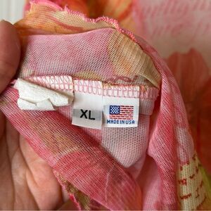 Y2K SNO SKINS Pink Orange Green Floral Micro Mesh Ruffle Shrug Wrap Top Sz XL