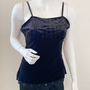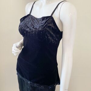 Y2K Vintage No Boundaries Stretch Black Velvet Tank Top w Sequin & Lace Details