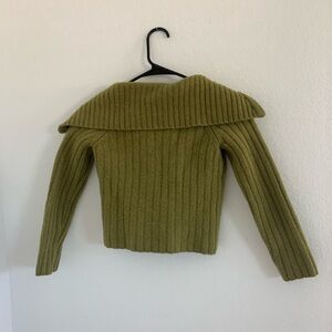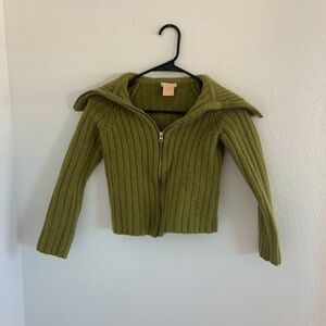 Y2k Forever 21 Olive Green Lambswool Mini Cropped Zip Sweater
