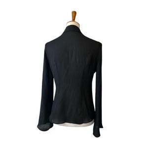 This fitted "pirate style" silk blouse is an early Y2k favorite. It brings a cool girl edge to a silk blouse. It's reminiscent of vintage Vivienne Westwood/Worlds End pieces.