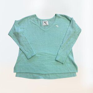 Y2k 2000s Abercrombie and Fitch Teal V-neck Pullover Sweater Women's size S Prep