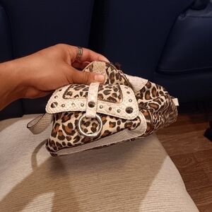 Y2k 2000s GUESS Leopard Print Shoulder Bag - Cream and Brown