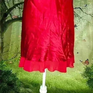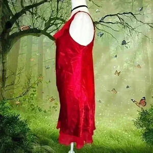 Y2k 90s red satin mini slip dress, has mesh ruffled on the chest area and the bottom area, has a cute red satin bow in the middle of the cheesy area, adjustable shoulder straps, can be layered, wear it under a leather jacket and leather knee high boots. 100% polyester. Brand: Inner Most