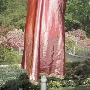 Y2k 90s Satin Victoria’s Secret Pink Slip With Beige Lace Size Small