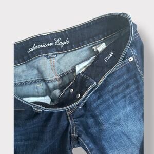 These Y2k American Eagle low rise artist jeans in a dark wash, size 6, are in excellent used condition! They have a slight stretch for a comfortable fit. Perfect for a retro look!