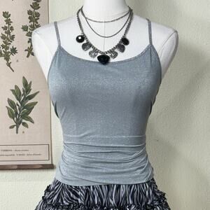Y2k Ann Taylor Silver Sparkle Metallic Stretch Cami Top Rave Trashy Party M