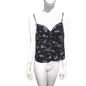 Y2k Arizona Jean Co Babydoll Womens Medium Black Floral Lace Whimsigoth Cami Top