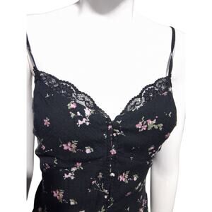 Y2k Arizona Jean Co Babydoll Womens Medium Black Floral Lace Whimsigoth Cami Top Fairygoth Witchy Casual Beachy Feminine Dark Romantic