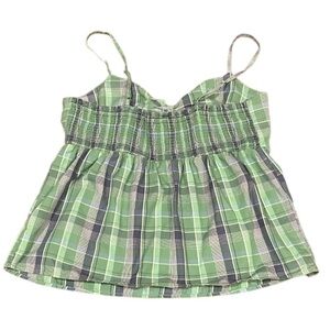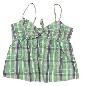 Y2k Babydoll Organic Cotton Plaid Knot Front Tank w/ Spaghetti Straps Smocked
