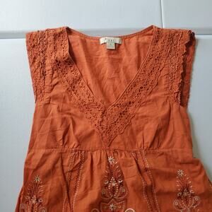 XXItop Womens Small Orange Boho Embroidered Crochet Sleeveless Summer Festival