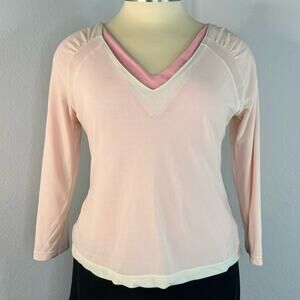 Y2k Balletcore Mesh Pink Layered Top V-Neck 3/4 Sleeves XL W