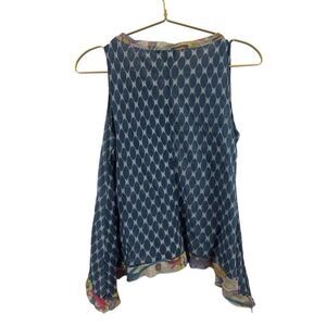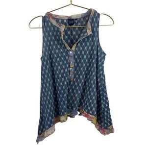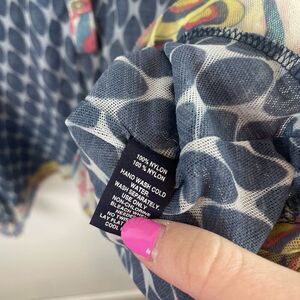 Y2k Blue Saks Fifth Avenue Mesh Floral Top Asymmetrical 100% Nylon Size XS