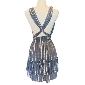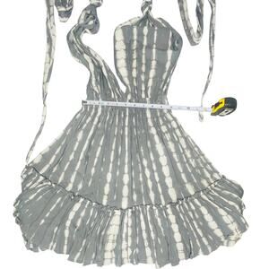 Y2k Boho Tie-Dye Mini Dress Deep V Adjustable Wrap Straps Size Small