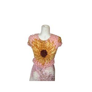Y2k bundle outfit features stretch flower blouse with a knee length floral print skirt size medium. This Y2k is accessorized with a lavender Bcbg shoulder bag medium size for cell and cash. Blouse is one size fits all. The fabric stretches from small to large.