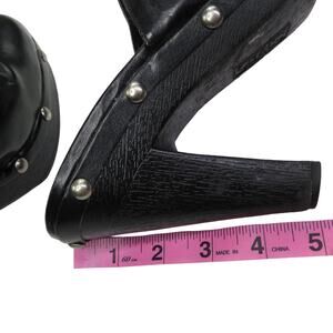 Vintage 1990s Chaps Susanah Clogs. Y2k Chunky Black Faux Leather Heeled Clog with Heel and Chunky Heel. Studded Metal Embellished Chunky Clogs. Euphoria Style