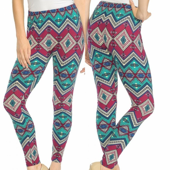 Y2k Chevron Teal Indie Art Print Leggings Size S M L Pink Owl Apparel
