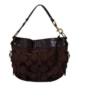 Y2k Coach 12674 Zoe Signature Logo Brown Jaquard Hobo Bag