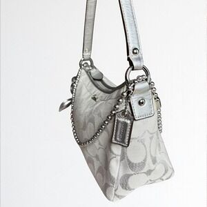 Y2k Coach Mini Bag Baguette Silver Metallic Glam Signature Monogram