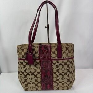 Y2k Coach Signature Python Stripe Tote Bag Raspberry