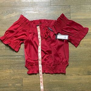 Y2k Crop Off Shoulder Boho Peasant Top NWT Romeo & Juliet Red Short Sleeve S M
