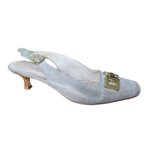 Y2k Donald J Pliner 6.5 Metallic Selma Slingback Pump Horsebit kitten heel