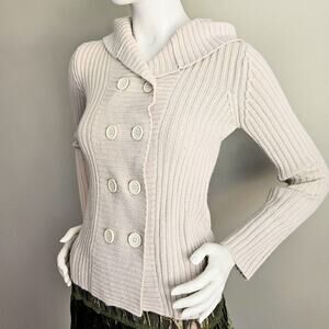 Y2k Double Breasted Ribbed Sweater Cardigan Twee Military Preppy Womens Size S