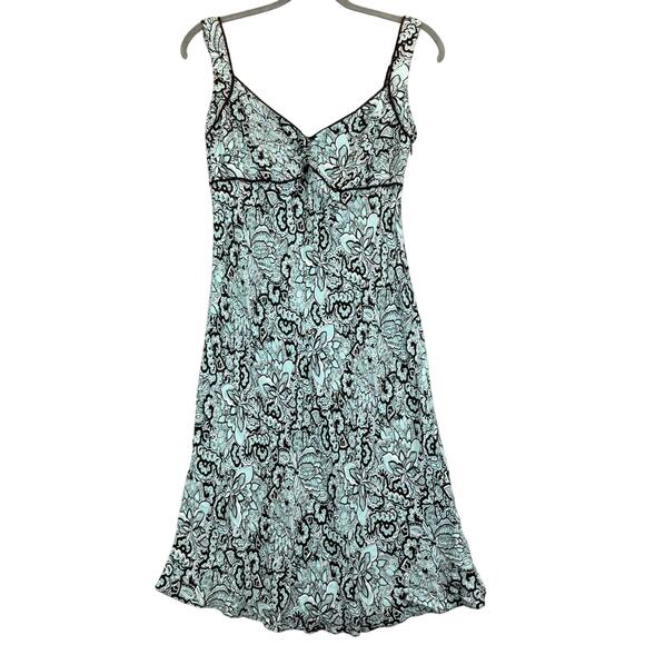 • Style: Vintage Y2k Dress Paisley Coquette Beachy Feminine Girlie Dainty Loralei Gilmore Phoebe Buffay Floral Empire Waist Lined Side zip Sleeveless Turquoise Brown