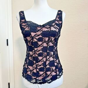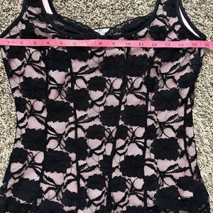 Super cute lace, pink and black corset style tank.