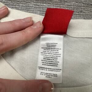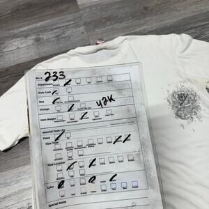 FLAW: Slight stain on armpit and small hole on back, but otherwise good condition