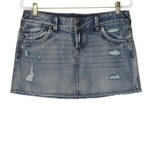 Y2k Express Jean Mini Skirt Frayed Hem Demi Micro Skirt Size 8 30"
