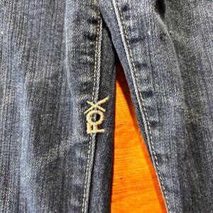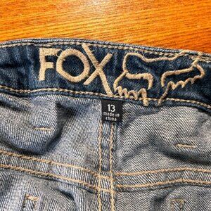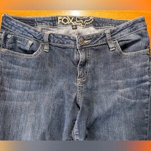 FOX size 13 dark wash jeans. Low rise and flared legs, tagged 2005! 99% cotton 1% spandex. Good condition signs of wear on the bottom cuffs pictured.
