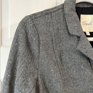 Y2k Fossil Gray Tailored Wool Blend Blazer with Notched Lapel - Size Small