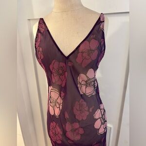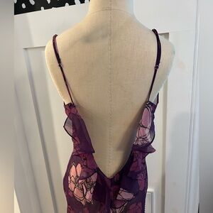 Y2k Frederick’s of Hollywood Sheer Chiffon Floral Purple Maxi Gown Slip Dress S