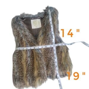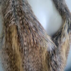 This Y2k GUESS faux coyote fur vest in tan XS is a vintage piece with a touch of retro flair. The slim fit lined vest features a hook & eye closure, fur accents, and a realistic coyote look. Looks like real fur.