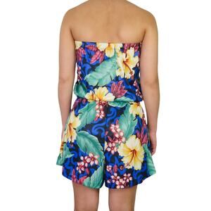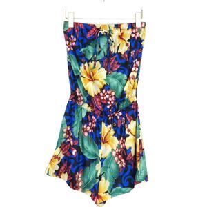 Y2k Granada New York Tropical Hawaiian Hibiscus Strapless Romper Small