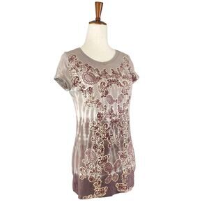 Would be super cute with some low rise jeans! Stain, pictured, but not noticeable due to the Dye pattern. No size tag, please refer to photos for measurements.