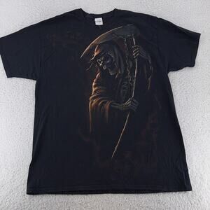 Y2k Grim Reaper Shirt Mens XL Black Fruit of the Loom Heavy Cotton Gothic Skeleton Tee