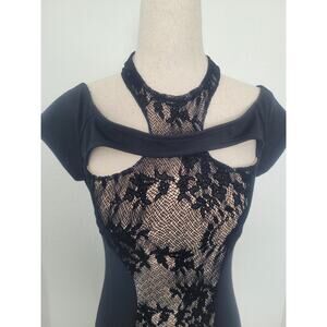 Y2k Guess Off The Shoulder Mock Neck Lace Cut Out Top Sz M Black Grunge Goth