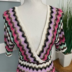 Y2k Guess Zig Zag Pattern Dress SZ Large Multicolor V-Nexk Coquette Knit GUC