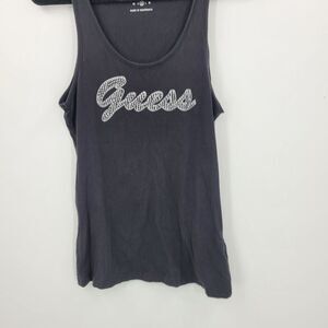 Y2k Guess Black Sleeveless Tank Top Sz M Rhinestone Log Spell Out Baddie Hip Hop
