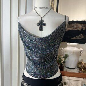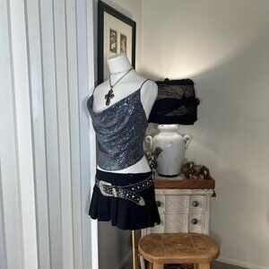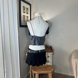 2000s sequin crop club top. Drape neck.