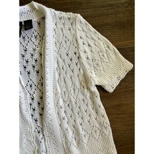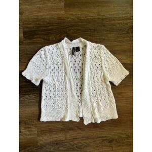Y2k Jason Maxwell White Knit Cardigan Short sleeve Cropped Size Small Acrylic. No buttons for closure. Good Pre-owned Condition.