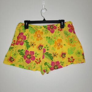 Joe Boxer shorts: yellow pink green, floral, drawstring, short, slightly sheer, lightweight