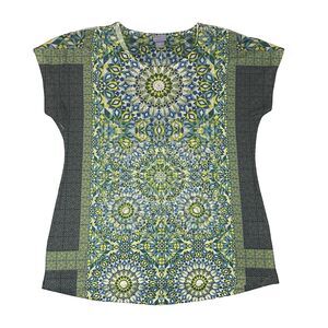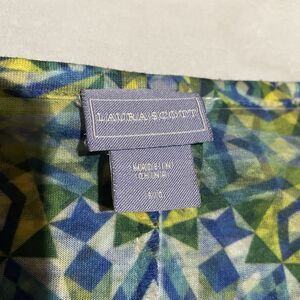 Y2k Laura Scott Boho Green & White Abstract Art Short Sleeve Top Size Small